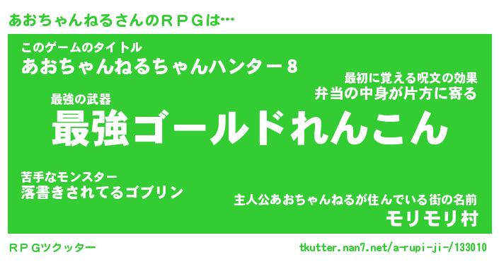 | 男性向けラノベタイトル風あだ名 | 『アオチャンネルアートオンライン』 |