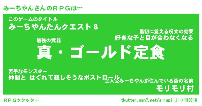 | ファンタジー風あだ名 | 『ミーフェル』『エターナルミーチヤンー』 |