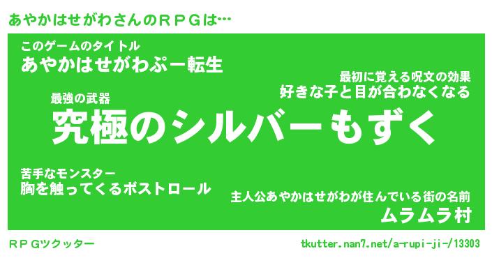 | 男性向けラノベタイトル風あだ名 | 『アヤカハセガワアートオンライン』 |