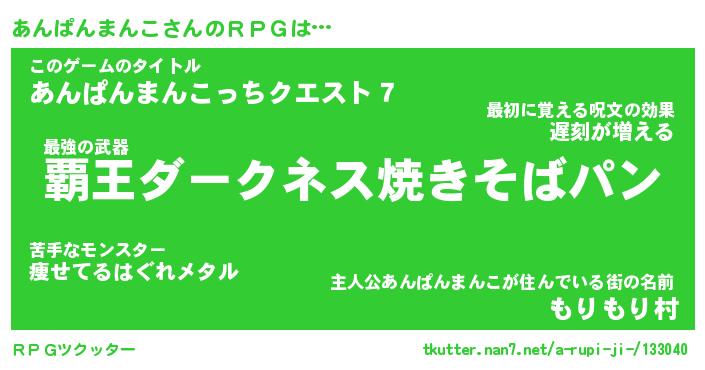 | 男性向けラノベタイトル風あだ名 | 『アンパンマンコアートオンライン』 |