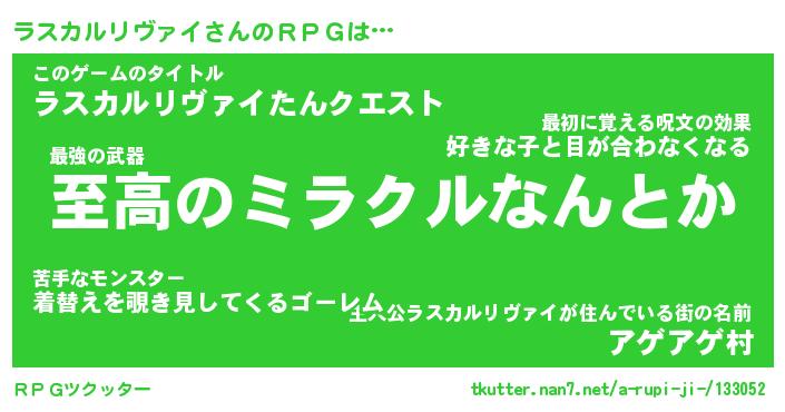 | 男性向けラノベタイトル風あだ名 | 『ラスカルリヴァイアートオンライン』 |