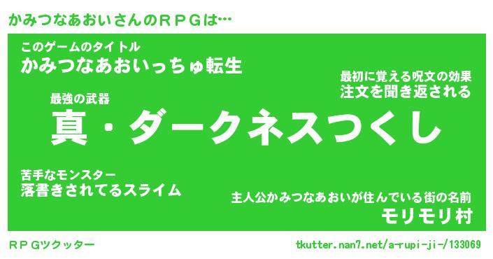 | 男性向けラノベタイトル風あだ名 | 『カミツナアオイアートオンライン』 |