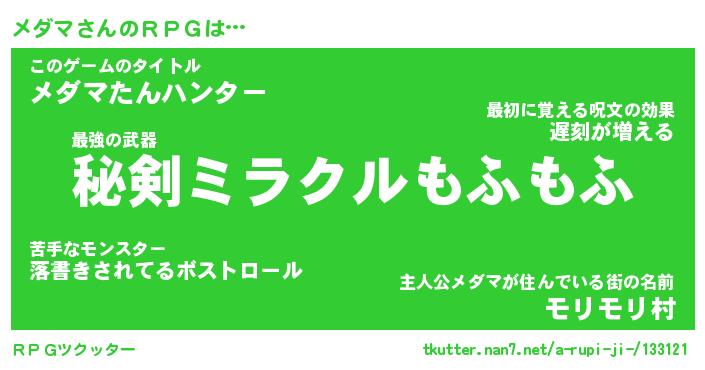| ファンタジー風あだ名 | 『メダフェル』『エターナルメダマー』 |