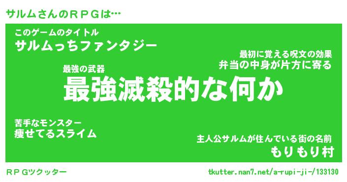 | 男性向けラノベタイトル風あだ名 | 『サルムアートオンライン』 |
