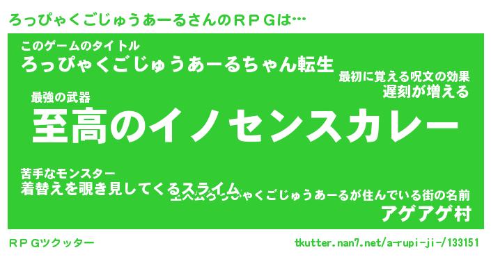 | 男性向けラノベタイトル風あだ名 | 『ロッピャクゴジュウアールアートオンライン』 |