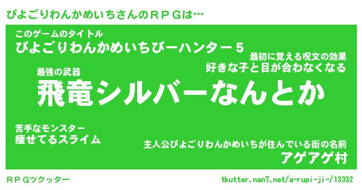 | 伝説のあだ名 | 『封印されし傭兵ぴよごりわんかめいち』 |
