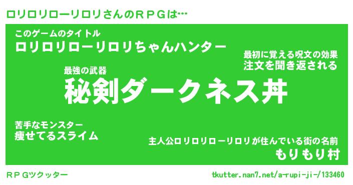 | 男性向けラノベタイトル風あだ名 | 『ロリロリローリロリの憂鬱』 |
