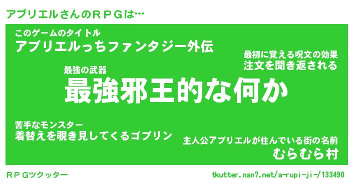 | 男性向けラノベタイトル風あだ名 | 『アブリエルアートオンライン』 |