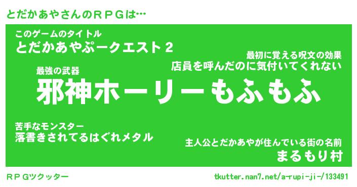 | ファンタジー風あだ名 | 『トダフェル』『エターナルトダカアヤー』 |
