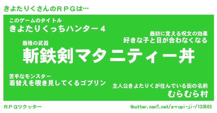 | 伝説のあだ名 | 『伝説のスナイパーきよたりく』 |
