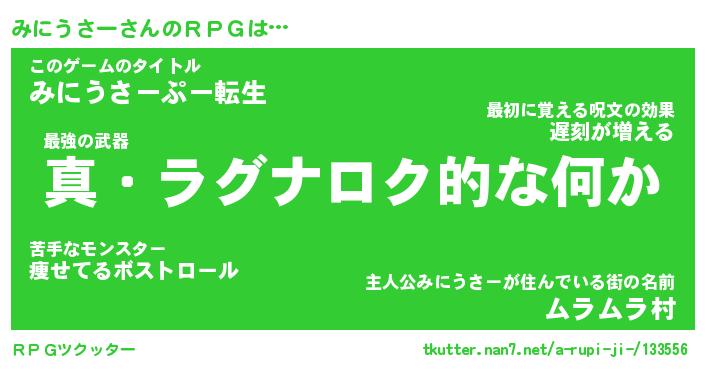| 男性向けラノベタイトル風あだ名 | 『ミニウサーアートオンライン』 |