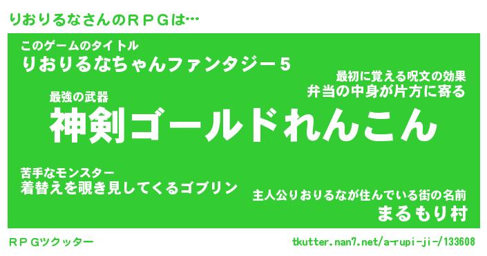 | 料理風あだ名 | 『節約★りおりるなと油揚げの玉子丼』 |