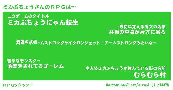 | 男性向けラノベタイトル風あだ名 | 『ミカブチョウアートオンライン』 |