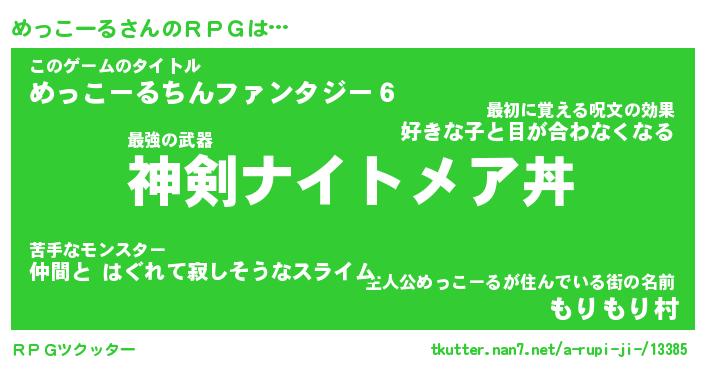 | 男性向けラノベタイトル風あだ名 | 『めっこーるの憂鬱』 |