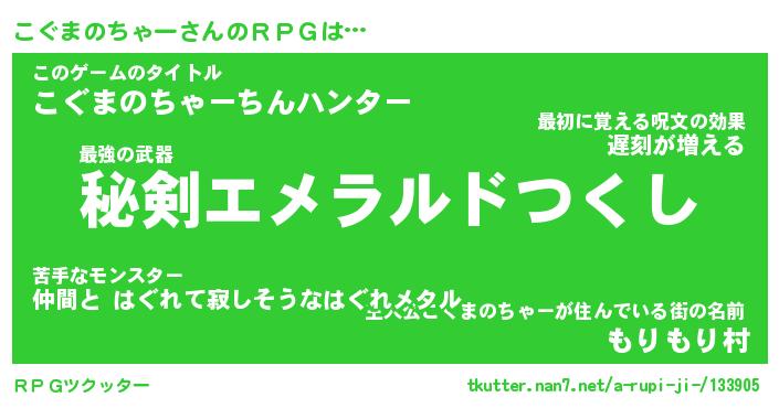 | ヒーロー風カッコイイあだ名 | 『スーパーコグマノチャー』 |