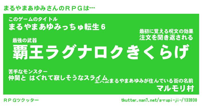| 胡散臭い通販商品みたいなあだ名 | 『億万長者になれるブレスレット…その名も「まるやまあゆみ」』 |