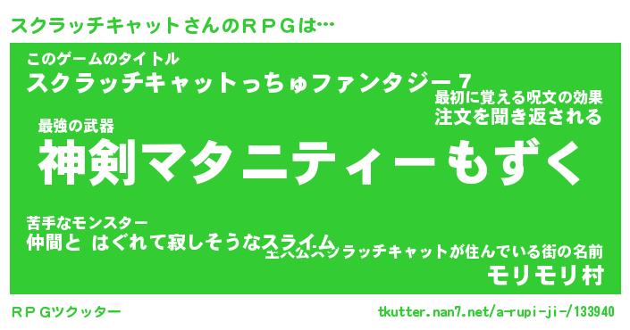 | ヒーロー風カッコイイあだ名 | 『スーパースクラッチキャット』 |