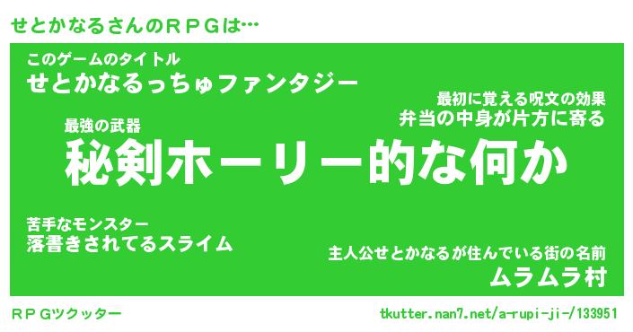 | 伝説のあだ名 | 『伝説の傭兵せとかなる』 |