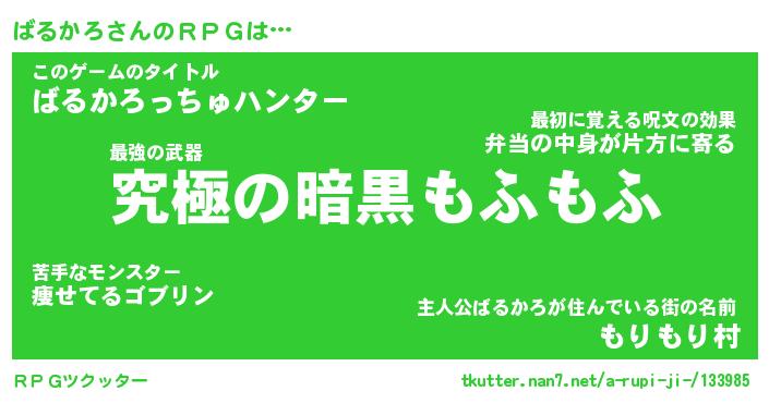 | 男性向けラノベタイトル風あだ名 | 『ばるかろの憂鬱』 |