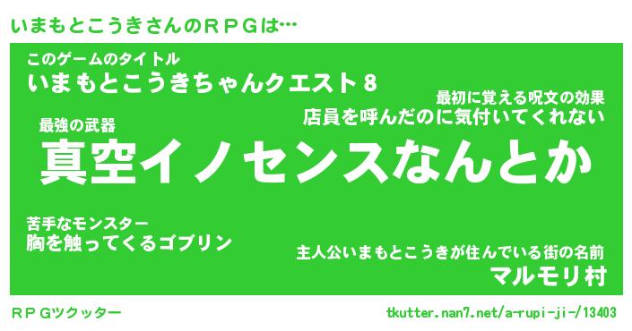 | 男性向けラノベタイトル風あだ名 | 『イマモトコウキアートオンライン』 |