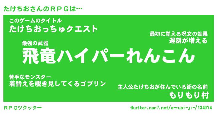 | ファンタジー風あだ名 | 『タケフェル』『エターナルタケチオー』 |
