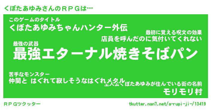 | 男性向けラノベタイトル風あだ名 | 『クボタアユミアートオンライン』 |