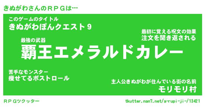 | ファンタジー風あだ名 | 『キヌフェル』『エターナルキヌガワー』 |