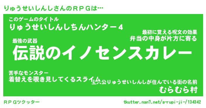 | 男性向けラノベタイトル風あだ名 | 『りゅうせいしんしの憂鬱』 |