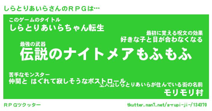 | 男性向けラノベタイトル風あだ名 | 『しらとりあいらの憂鬱』 |