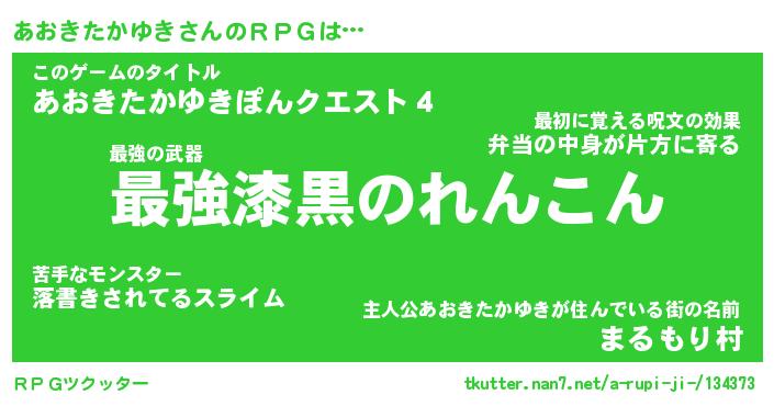 | 男性向けラノベタイトル風あだ名 | 『アオキタカユキアートオンライン』 |