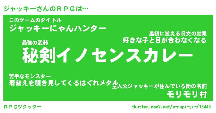 | ファンタジー風あだ名 | 『ジャフェル』『エターナルジャッキーー』 |