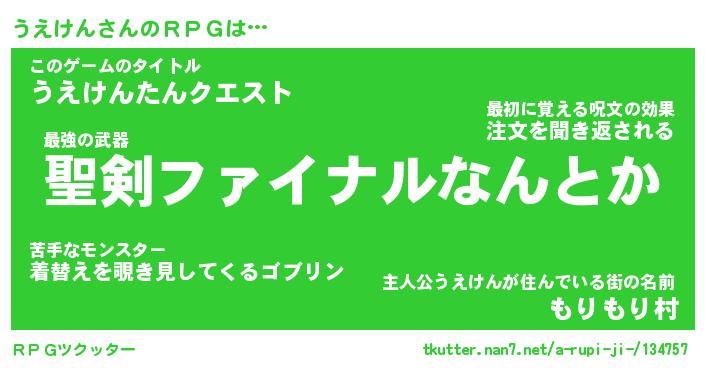 | ファンタジー風あだ名 | 『ウエフェル』『エターナルウエケンー』 |