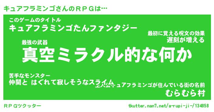 男性向けラノベタイトル風あだ名 | 『キュアフラミンゴアートオンライン』 |