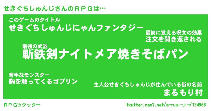 | 胡散臭い通販商品みたいなあだ名 | 『必ず成功する霊験あらたかなお札…その名も「せきぐちしゅんじ」』 |