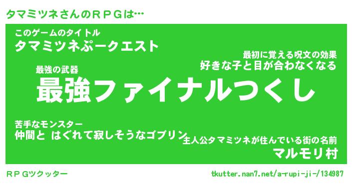 | ファンタジー風あだ名 | 『タマフェル』『エターナルタマミツネー』 |