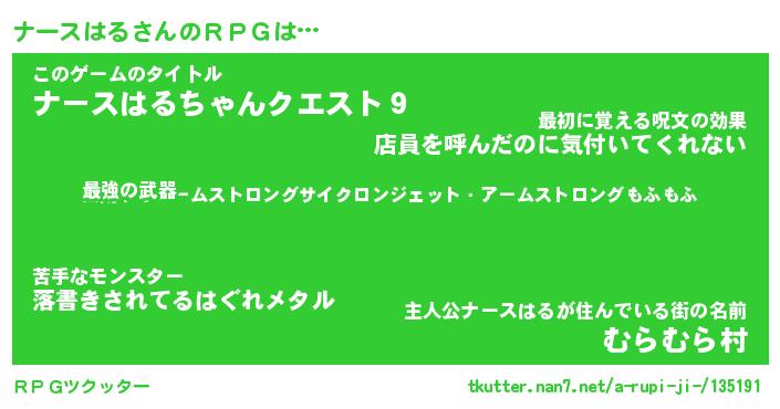 | ファンタジー風あだ名 | 『ナーフェル』『エターナルナースハルー』 |