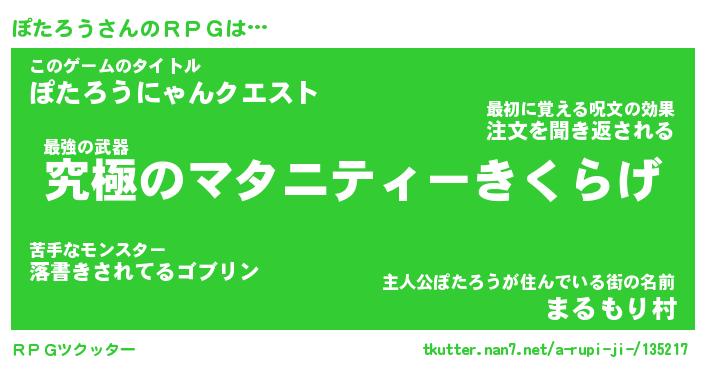 | 男性向けラノベタイトル風あだ名 | 『ポタロウアートオンライン』 |