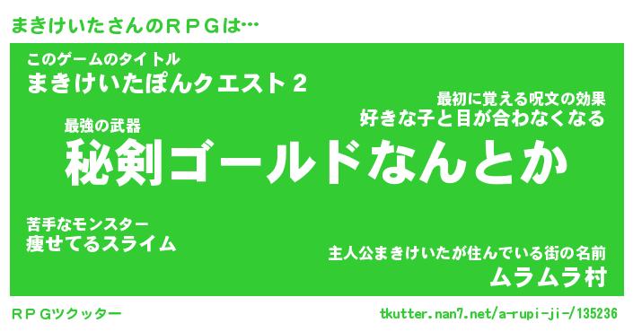 | 男性向けラノベタイトル風あだ名 | 『まきけいたの憂鬱』 |