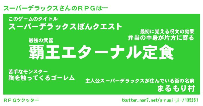 | 胡散臭い通販商品みたいなあだ名 | 『億万長者になれる水晶球…その名も「スーパーデラックス」』 |