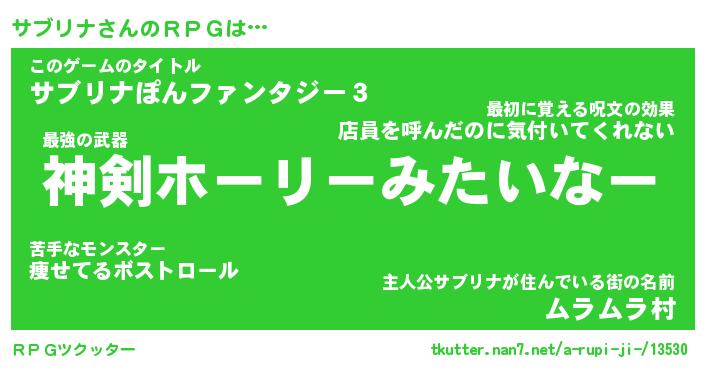| ファンタジー風あだ名 | 『サブフェル』『エターナルサブリナー』 |