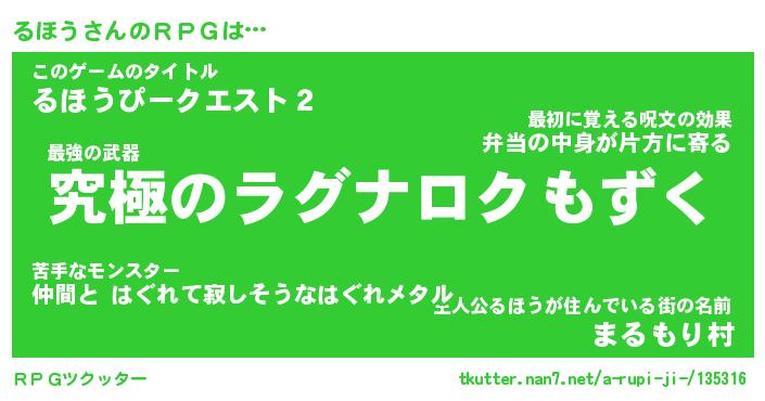 | ヒーロー風カッコイイあだ名 | 『スーパールホウ』『ウルトラるほうマン』 |