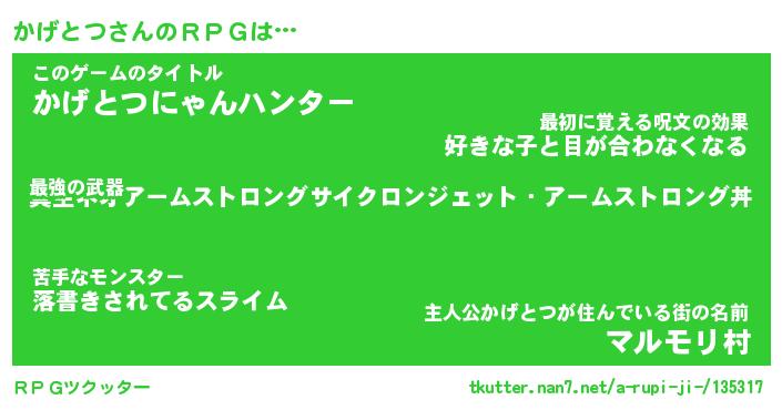 | ファンタジー風あだ名 | 『カゲフェル』『エターナルカゲトツー』 |