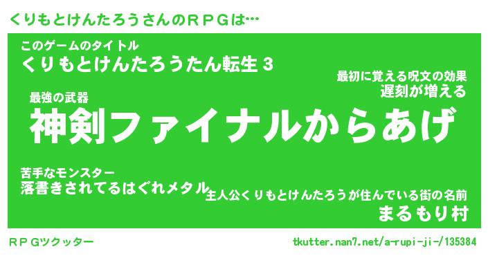 | 男性向けラノベタイトル風あだ名 | 『くりもとけんたろうの憂鬱』 |