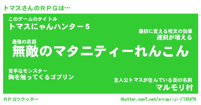 | ファンタジー風あだ名 | 『トマフェル』『エターナルトマスー』 |
