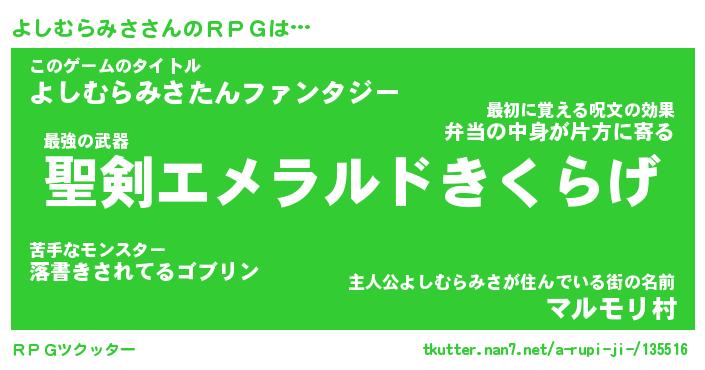 | 胡散臭い通販商品みたいなあだ名 | 『必ず成功する霊験あらたかなお札…その名も「よしむらみさ」』 |
