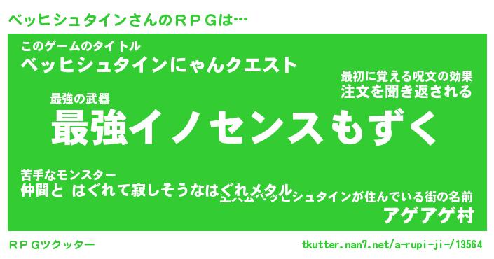 | 男性向けラノベタイトル風あだ名 | 『ベッヒシュタインアートオンライン』 |