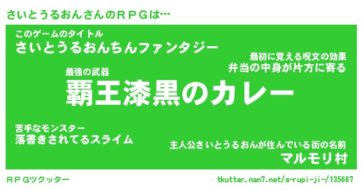 | 男性向けラノベタイトル風あだ名 | 『サイトウルオンアートオンライン』 |