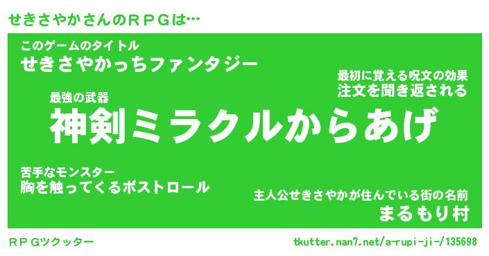 | 女子向けラノベタイトル風あだ名 | 『せきさやか姫と円卓の騎士』 |