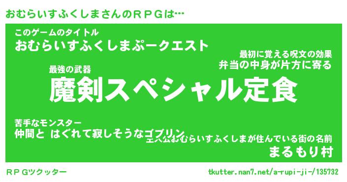| 男性向けラノベタイトル風あだ名 | 『おむらいすふくしまの憂鬱』 |