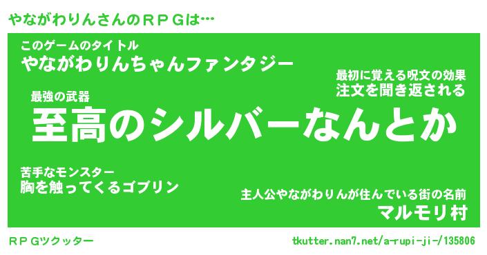 | 男性向けラノベタイトル風あだ名 | 『ヤナガワリンアートオンライン』 |